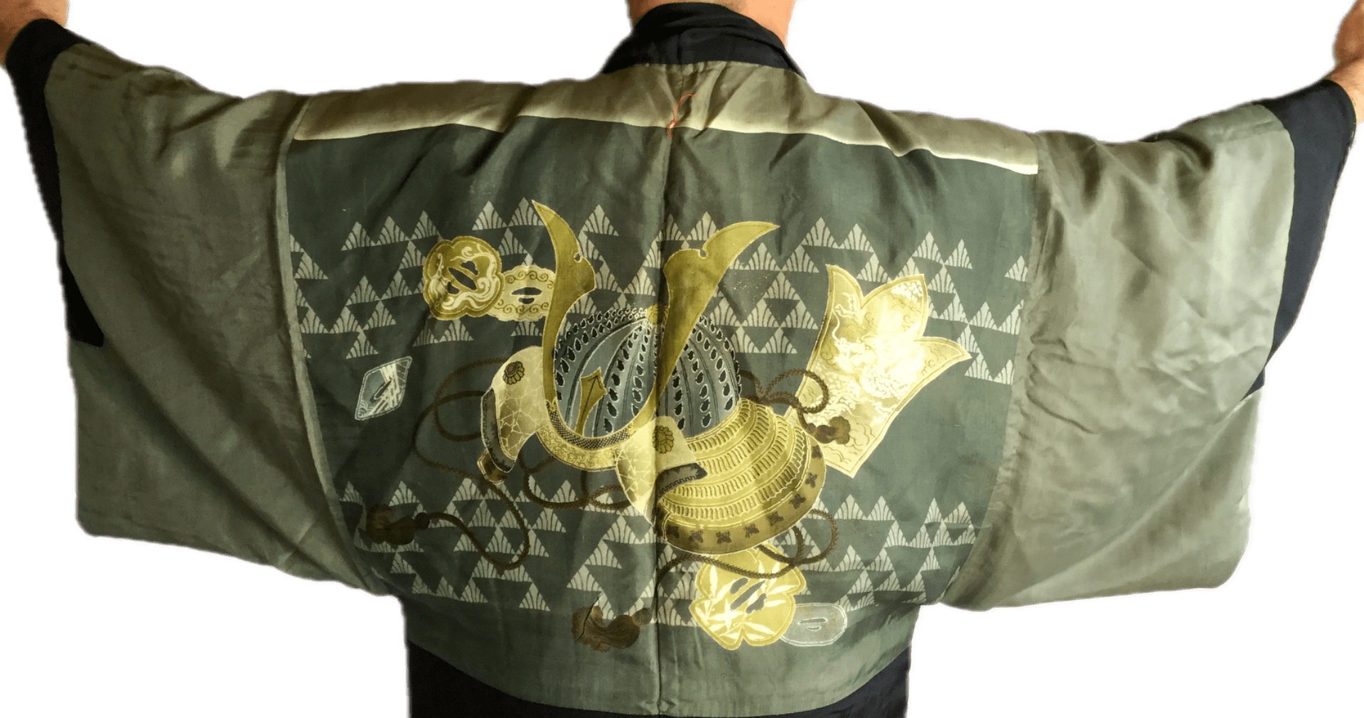 Haori Japonais Homme Antique Tsuru Montsuki - Kabuto
